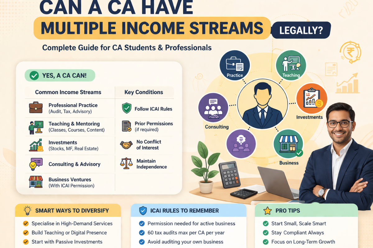 Many CA students and newly qualified professionals often ask this question: Can a CA have multiple income streams legally?