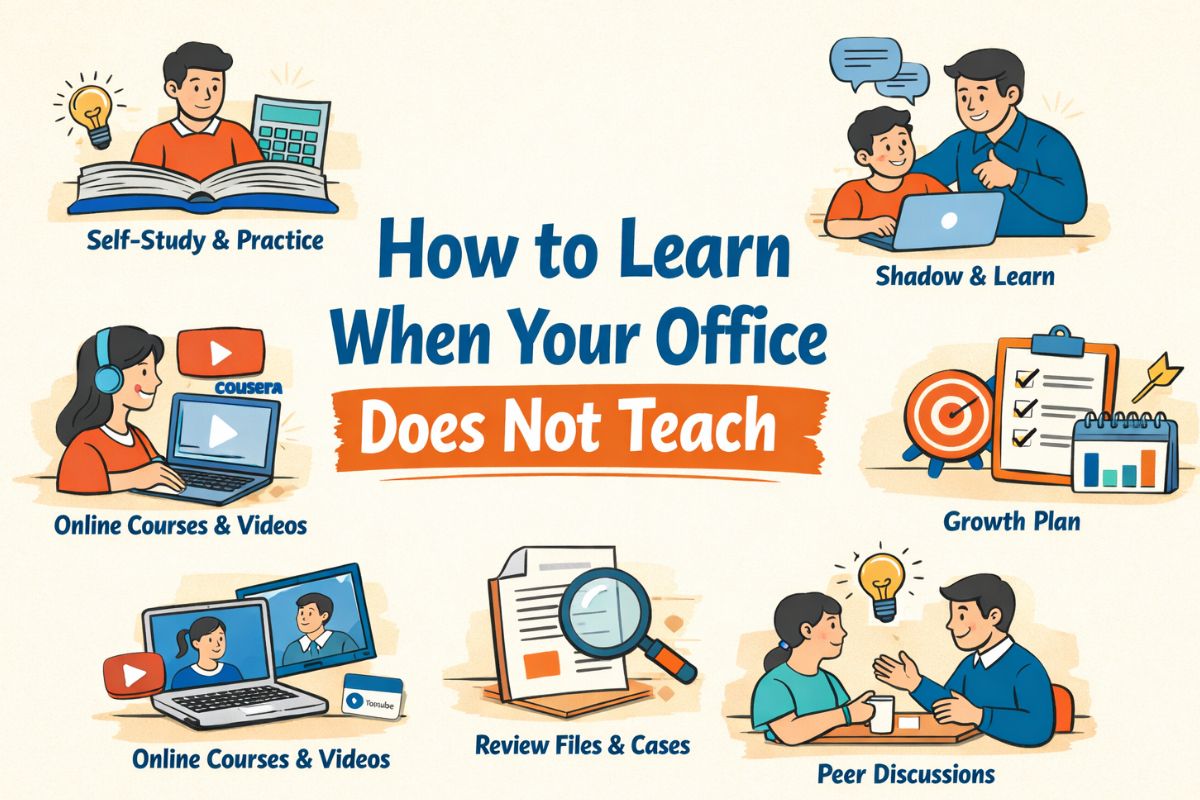 The truth is simple — your office may give you exposure, but your growth depends on how you learn. If your office does not teach, you must learn strategically on your own.