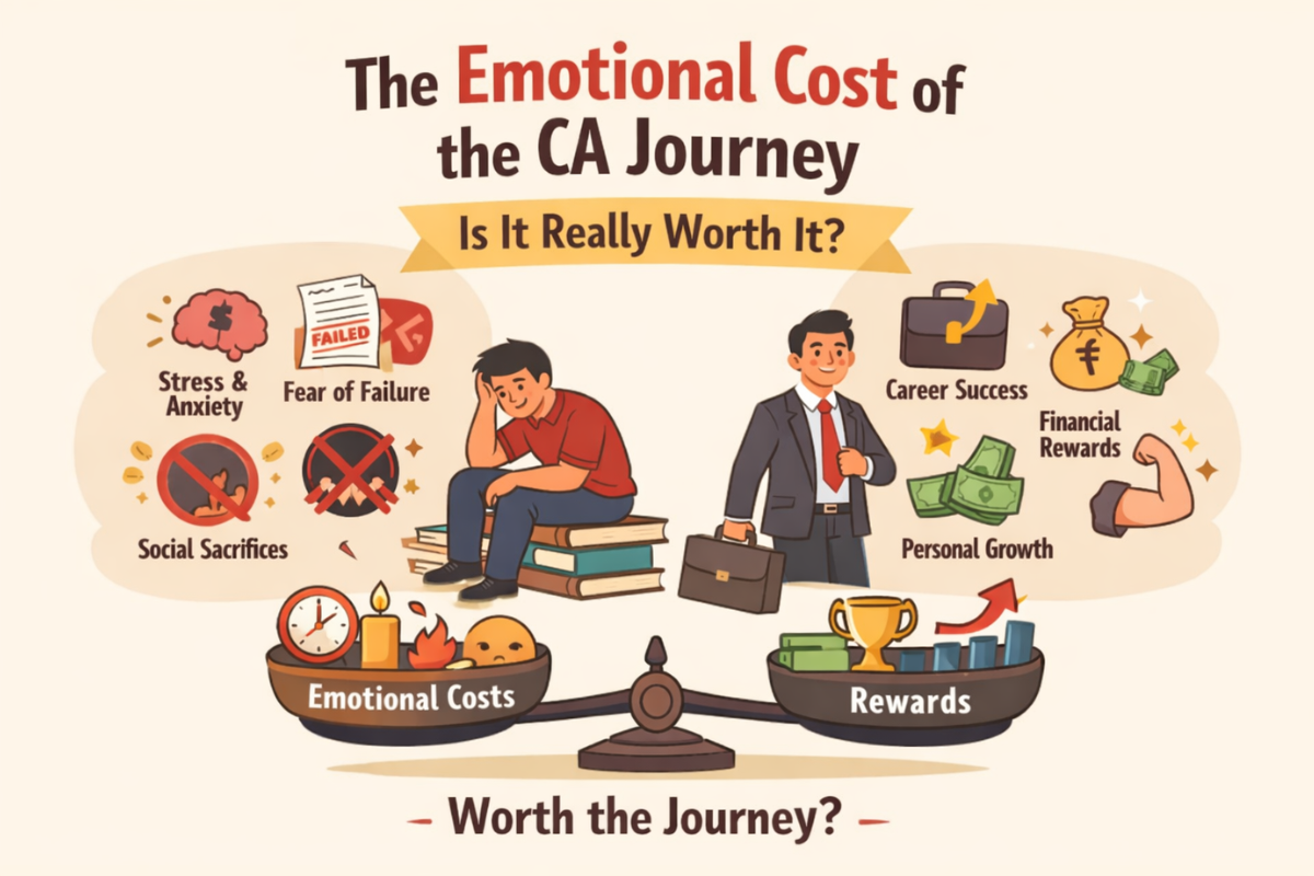 If you are preparing for Chartered Accountancy, you already know that the CA journey is not just about books, classes, and exams. It is also about emotions. Stress, self-doubt, pressure, loneliness, and fear become silent companions for many students. People talk a lot about the difficulty of CA exams, but very few talk honestly about the emotional cost of becoming a CA.