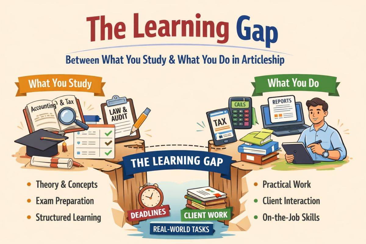 The learning gap between what you study and what you do in articleship is natural. It is not a flaw in the CA course. It is part of professional training.