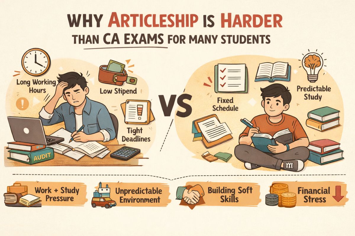 In this article, let us understand clearly why articleship is harder than CA exams for many students, and what you can do to handle it better.